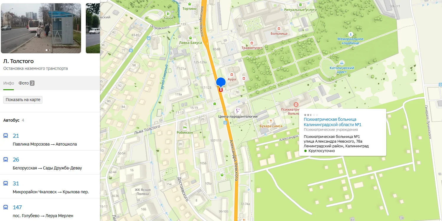 Схема №4. Номера автобусов приезжающие к Психиатрической больнице на ул. А.Невского 78а