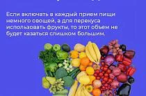 Разнообразие продуктов: ешьте овощи, фрукты, цельнозерновые, белковые продукты и молочные продукты.